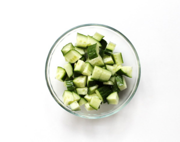 Az uborkát megmossuk, a héjával együtt apró kockára vágjuk.