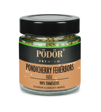 A fehér pondicherry bors kevésbé aromás, mint a fekete bors, de kellően tüzes ahhoz, hogy óvatosan ízesítsünk vele.